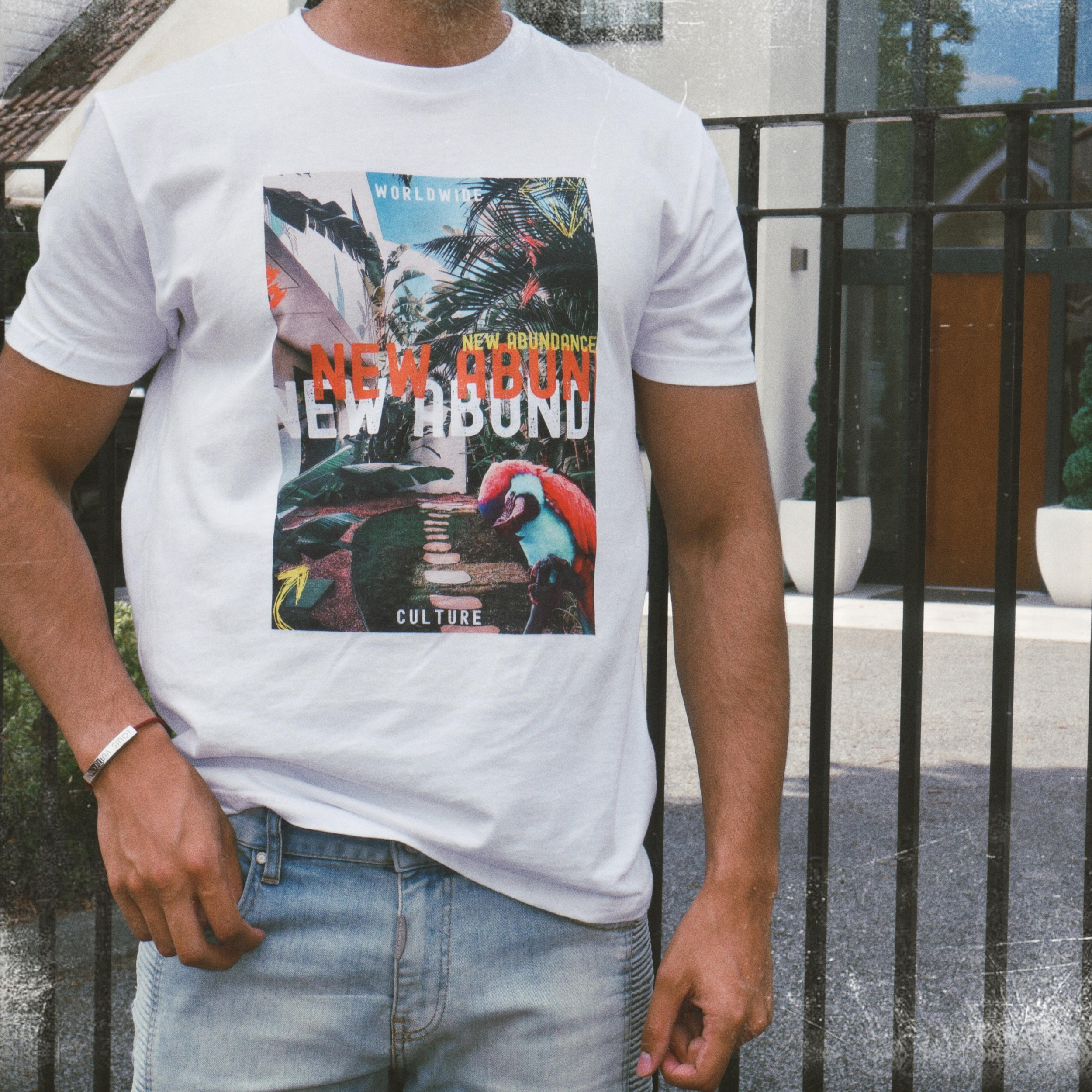 Update your casual collection with our limited edition New Abundance Exotic t-shirt. Cut with a slim fit, this piece is crafted from 100% ring-spun cotton with a crew neckline, short sleeves and finished with our all-new Exotic Culture graphic on the chest.